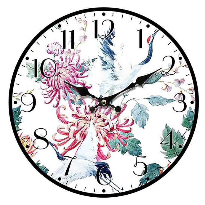 Hodiny nástěnné - pr. 34 cm, MDF, vzor květin s jeřáby, sada 2 ks