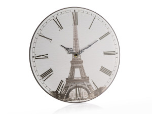 Nástěnné kulaté hodiny TOWER, s celoplošným dekorem.