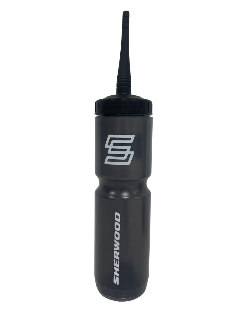 Velkokapacitní sportovní láhev Sherwood s praktickou dlouhou hubicí a náhradní menší v balení – ideální na tréninky i zápasy s maximální hydratací.