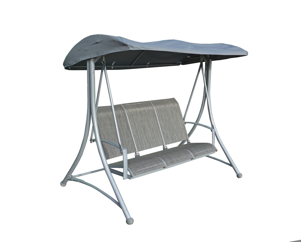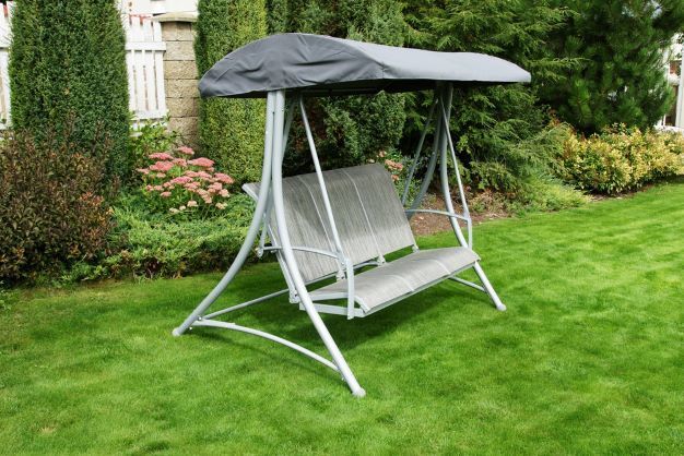 Tato zahradní houpačka má atraktivní moderní design a je ideální na zahradu či terasu. Konstrukce je kovová, látka z polyesteru, sedák z textilenu. Výhodou je praktická, naklápěcí stříška, která poslouží jako stínidlo.