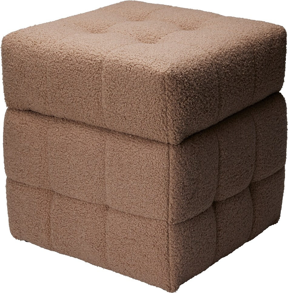 Praktický taburets úložným prostorem, vyrobený z kombinace MDF, překližky a měkkého materiálu Teddy, vhodný pro uložení hraček nebo drobných předmětů.