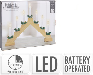 Dotaz na produktVánoční dekorace LED svícen přírodní stojan 395X50X310MM, barva LED: teplá bílá, napájení 2 x AA baterie, časovač
