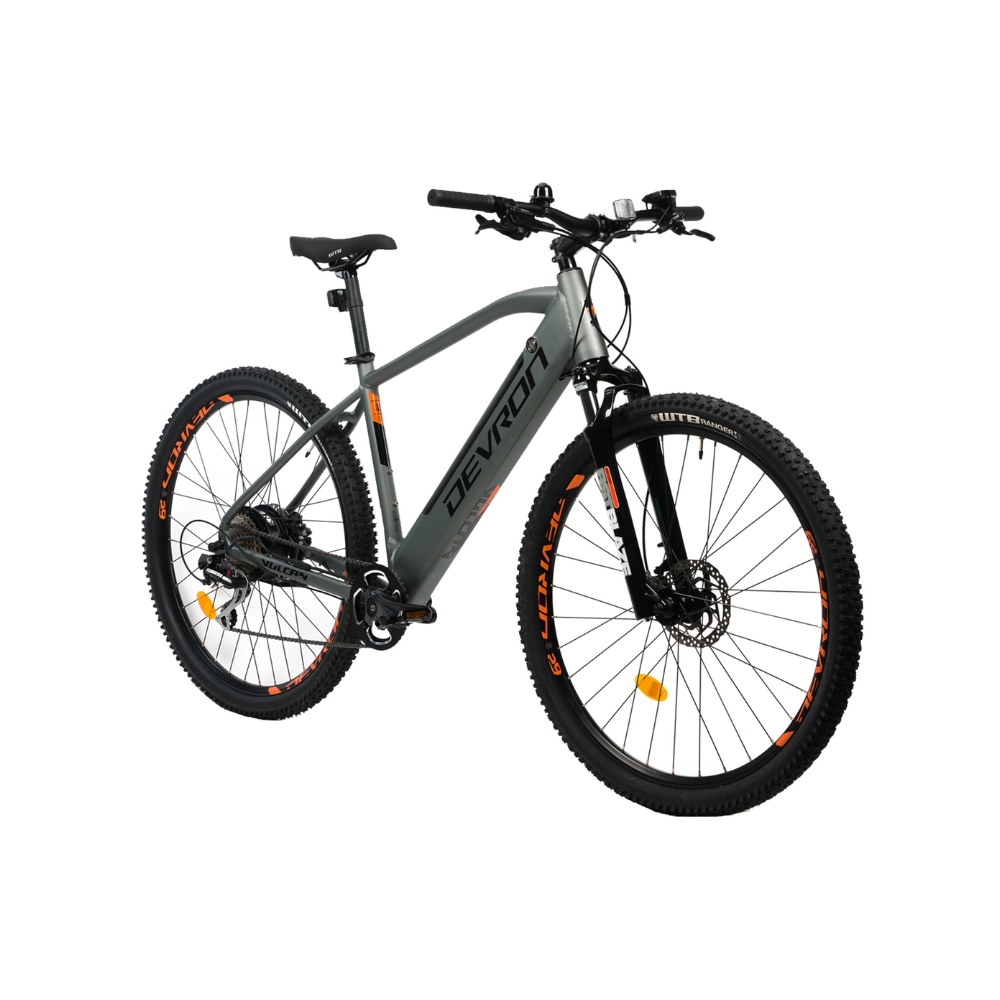 Horské elektrokolo Devron Vulcan 29" spojuje odolnost, výkon a moderní design. Hliníkový rám s 29" koly zvládá lesní stezky i městské výmoly s lehkostí, zatímco odpružená vidlice RST Blaze se 100mm zdvihem a uzamykáním zajišťuje pohodlí i efektivní přenos energie na rovinách. K tomu přidej hydraulické kotoučové brzdy Shimano MT201 a máš pod sebou stroj, který tě nenechá ve štychu ani při svižnější jízdě z kopce.