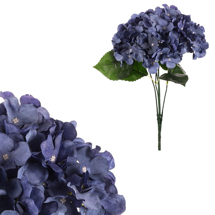 Dotaz na produktUmělá kytice tmavě modrých hortenzií s pěti hlavami je dokonalou volbou pro vaši květinovou výzdobu. Každá hlava této oblíbené květiny je věrnou kopií svého živého protějšku, a to včetně jejího krásného odstínu. Hortenzie vyniká svým velkým květenstvím, které přináší do vašeho domova nádech elegance a přírodní krásy. Jako umělá květina vám nikdy neuvadne, a tak bude stále v té nejkrásnější formě, bez ohledu na roční období, a také to, jak se o ní staráte. Můžete si vybrat krásnou vázu a nechat ji vynikat samostatně, nebo ji začlenit do komplexních květinových výzdob.