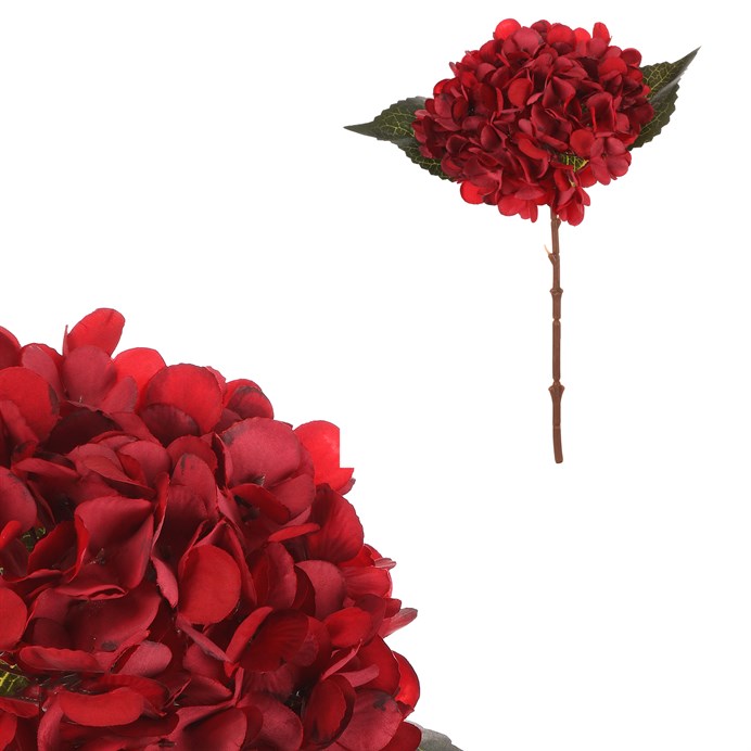 Dotaz na produktSytě červeně zbarvená hortenzie na stonku v umělém provedení, je dokonalou náhradou živé květiny, která vás potěší svou trvalou krásou bez potřeby údržby. Je ideální pro ozdobení prostor, které chcete zútulnit a oživit, aniž byste museli myslet na zalévání či péči. Díky svému realistickému vzhledu se hodí do každého interiéru, a to buď samostatně v elegantní váze, nebo jako součást větších kytic či květinových aranží.
