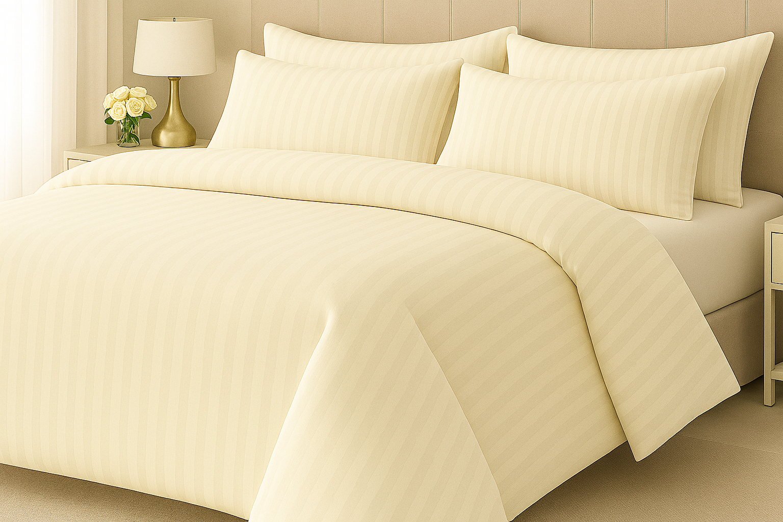 Hotelové povlečení 140x220, 70x90cm Atlas gradl smetanový - česaný 145g/m2, proužek 2cm (Zapínání: nitěný knoflík)