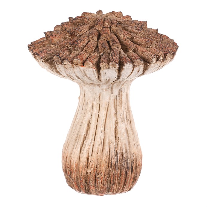 Dotaz na produktZahradní dekorace v podobě houby z polyresinu bude skvělou volbou pro vytvoření nádherného lesního zákoutí. Tato houba svým vzhledem připomíná dekoraci vyrobenou ze dřeva a větviček v béžovo-hnědých odstínech. Klobouk je vytvořen jakoby z poskládaných kousků nasekaných dřívek.