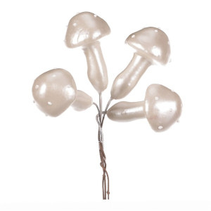 Dotaz na produktVyužijte netradičních prvků pro vánoční výzdobu v podobě umělých hub na drátkách, které mají kloboučky zbarvené do bílé perleti. V jedné krabičce najdete celkem 24 kusů, přičemž se barevně hodí skvěle pro toto sváteční období a nabízí tak nepřeberné množství variant jejich využití. Drátky umožnují snadné připevňování na věnce, větvičky, různé části konstrukcí a další vhodná místa. Můžete si díky nim vytvořit kouzelné lesní království plné hub a dodat sváteční atmosféře obohacující a originální ozdobný prvek. Upozorňujeme však, že nejsou určené ke konzumaci a důrazně doporučujeme chránit je mimo dosah dětí.