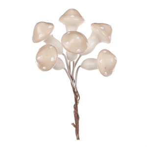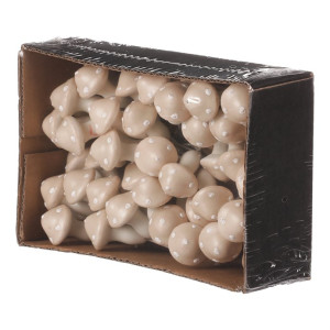 Dotaz na produktPokud si rádi vytváříte svou vlastní výzdobu, budou tyto drobné houby na drátku pro vás ideální volbou. Krásné krémové zbarvení jejich kloboučků bude výrazným doplňkem pro nejrůznější typy výzdob, zejména pak pro podzimní sezónu. Navíc se s nimi díky drátku velmi dobře pracuje a snadno se aranžují na místo určení. Houbaření je pro většinu z nás spojené s pozdním létem a právě podzimem, kdy se to v našich lesích hemží nejrůznějšími druhy nádherně zbarvených hub. Máte tak jedinečnou možnost vytvořit si úžasný lesní koutek i u vás doma. V jednom balení najdete celkem 48 kusů, takže získáte rovnou poměrně početnou sadu těchto drobných dekorací, které nabízí široké možnosti kombinací a využití. Jen pozor! Nejedná se o produkty ke konzumaci, tím spíše je chraňte před dosahem dětí.