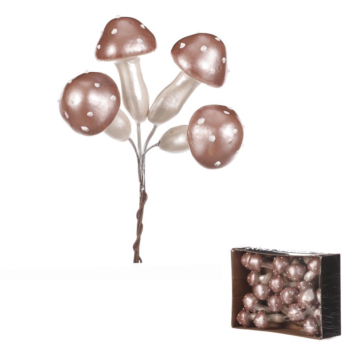 Dotaz na produktVyužijte netradičních prvků pro vánoční výzdobu v podobě umělých hub na drátkách, které mají kloboučky zbarvené do růžové perleti. V jedné krabičce najdete celkem 24 kusů, přičemž se barevně hodí skvěle pro toto sváteční období a nabízí tak nepřeberné množství variant jejich využití. Drátky umožnují snadné připevňování na věnce, větvičky, různé části konstrukcí a další vhodná místa. Můžete si díky nim vytvořit kouzelné lesní království plné hub a dodat sváteční atmosféře obohacující a originální ozdobný prvek. Upozorňujeme však, že nejsou určené ke konzumaci a důrazně doporučujeme chránit je mimo dosah dětí.