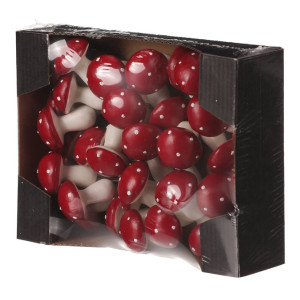 Drobné a lehké plastové houby na drátku jsou všestrannými ozdobami pro vytváření především podzimních aranží. Mají červenou barvu kloboučků s bílými puntíky přípomínající mochomůrky červené a balené jsou po 30 kusech v krabičce. Ohebné drátky, na kterých jsou připevněny, umožnují jejich snadnou aplikaci. Můžete si vytvořit své vlastní podzimní lesní zákoutí, na které se bude radost dívat. Díky tomu, že jsou umělé a nádherně zpracované, vám nabízí trvalou a nikdy nekončící krásu pro vaše nápady a kreativní tvorbu. Upozorňujeme však, že nejsou určené ke konzumaci a důrazně doporučujeme chránit je mimo dosah dětí.