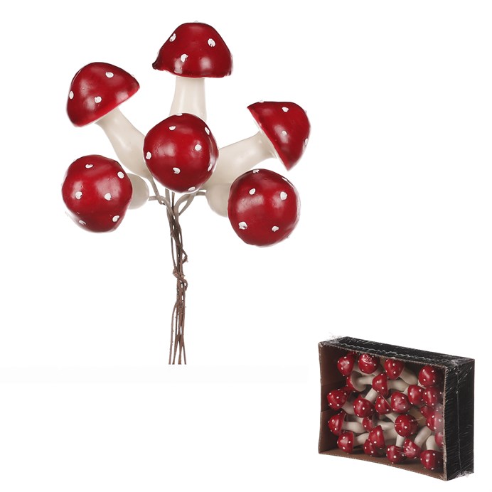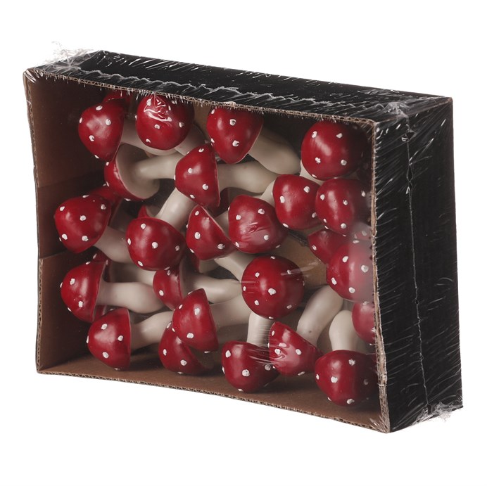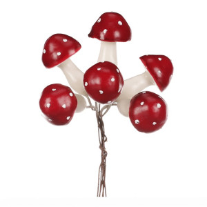 Dotaz na produktPokud si rádi vytváříte svou vlastní výzdobu, budou tyto drobné houby na drátku pro vás ideální volbou. Krásné tmavě červené zbarvení jejich kloboučků bude výrazným doplňkem pro nejrůznější typy výzdob, zejména pak pro podzimní sezónu. Navíc se s nimi díky drátku velmi dobře pracuje a snadno se aranžují na místo určení. Houbaření je pro většinu z nás spojené s pozdním létem a právě podzimem, kdy se to v našich lesích hemží nejrůznějšími druhy nádherně zbarvených hub. Máte tak jedinečnou možnost vytvořit si úžasné lesní zátiší i u vás doma. V jednom balení najdete celkem 36 kusů, takže získáte rovnou poměrně početnou sadu těchto drobných dekorací, které nabízí široké možnosti kombinací a využití. Jen pozor! Nejedná se o produkty ke konzumaci, tím spíše je chraňte před dosahem dětí.