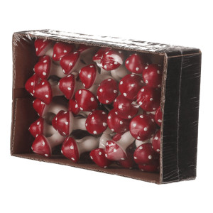 Dotaz na produktPokud si rádi vytváříte svou vlastní výzdobu, budou tyto drobné houby na drátku pro vás ideální volbou. Krásné tmavě červené zbarvení jejich kloboučků bude výrazným doplňkem pro nejrůznější typy výzdob, zejména pak pro podzimní sezónu. Navíc se s nimi díky drátku velmi dobře pracuje a snadno se aranžují na místo určení. Houbaření je pro většinu z nás spojené s pozdním létem a právě podzimem, kdy se to v našich lesích hemží nejrůznějšími druhy nádherně zbarvených hub. Máte tak jedinečnou možnost vytvořit si úžasný lesní koutek i u vás doma. V jednom balení najdete celkem 48 kusů, takže získáte rovnou poměrně početnou sadu těchto drobných dekorací, které nabízí široké možnosti kombinací a využití. Jen pozor! Nejedná se o produkty ke konzumaci, tím spíše je chraňte před dosahem dětí.