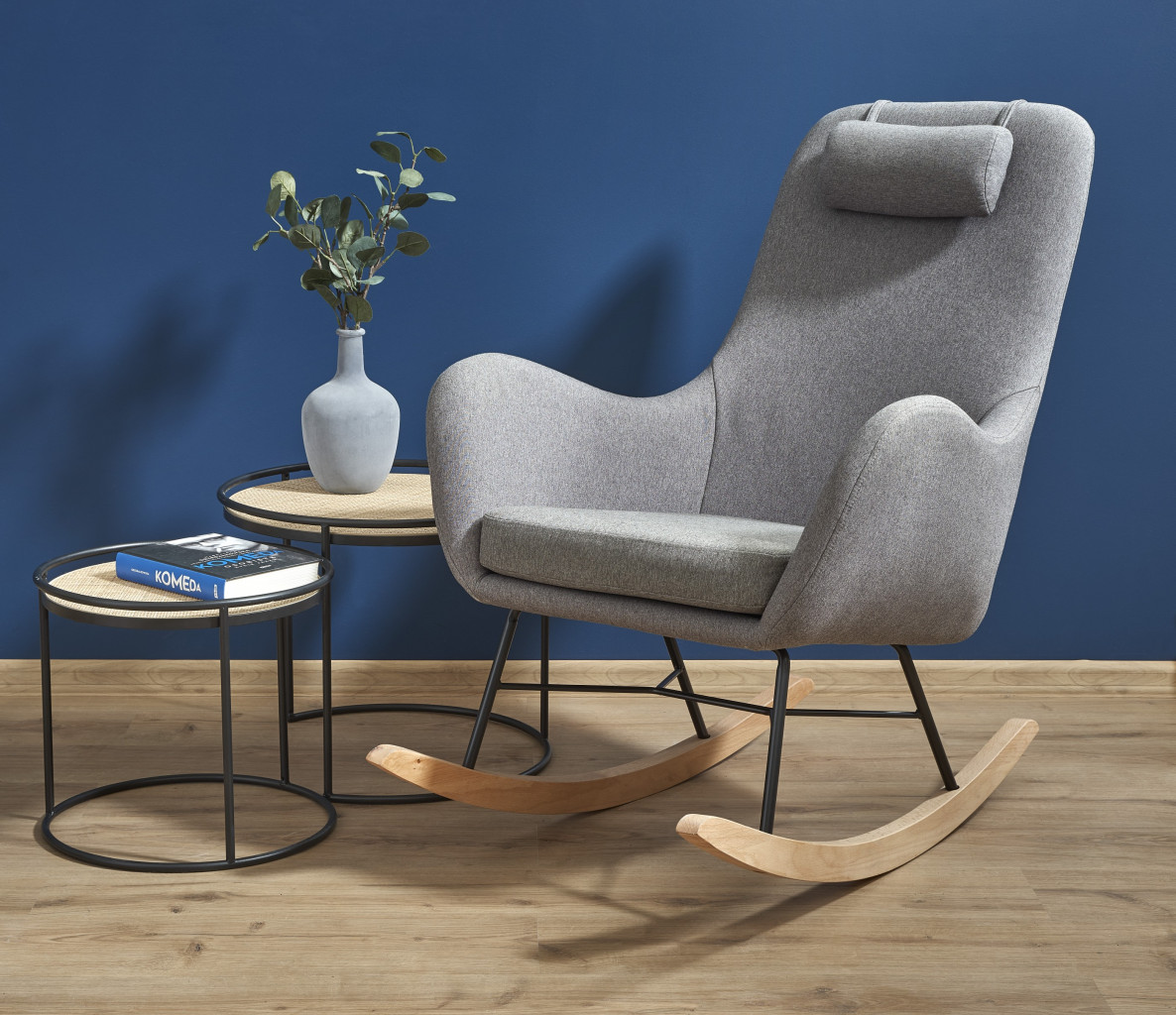 Houpací křeslo je vyrobeno v kombinaci chromované oceli, masivu a látky. Houpací křeslo slouží k relaxaci a pohodlnému oddychu.