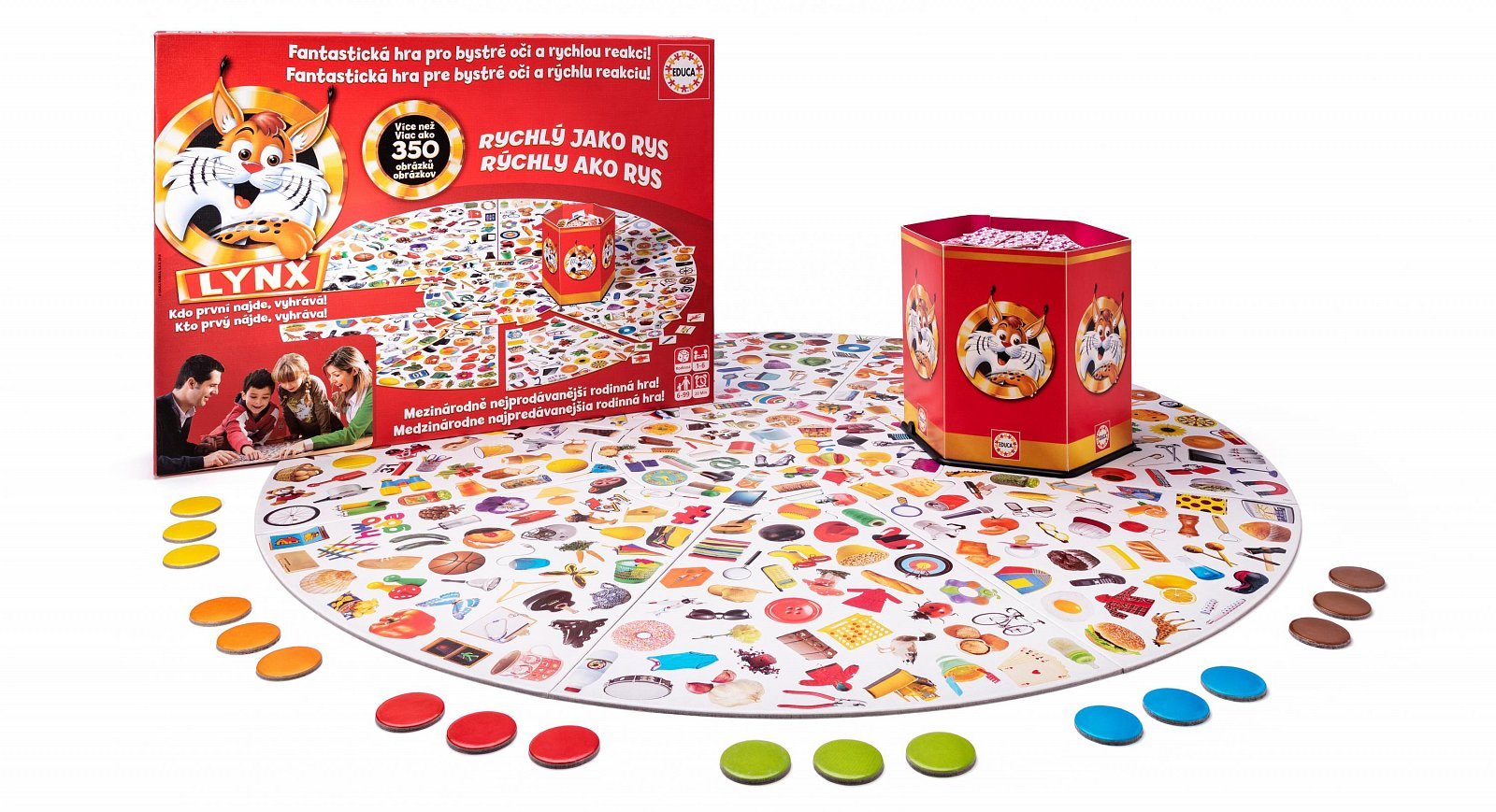 Dotaz na produktKdo je rychlý a bystrý jako rys, tak vyhrává! Akční společenská hra Educa Borras Lynx 350 Pictures je vhodná pro 1 až 6 hráčů ve věku od 6 let, takže se skvěle hodí pro školu v přírodě, rodinné večery, narozeninové oslavy i další příležitosti všeho druhu. Každý soutěžící si procvičuje reflexy, pohotovost i koordinaci rukou a očí, takže hra nakonec prokáže, který z hráčů má nejsilnější zrak a nejrychlejší reakce. Stačí rozložit hrací desku, promíchat balíček, líznout si 3 ilustrované kartičky a můžete začít s hrou, která průměrně trvá okolo 20 minut. Celý set obsahuje více než 350 herních kartiček, sadu barevných žetonů a 9dílnou hrací desku, kterou lze pokaždé sestavit v jiné herní variantě, což zaručeně zatočí s nudou a rutinní zábavou jednou provždy.