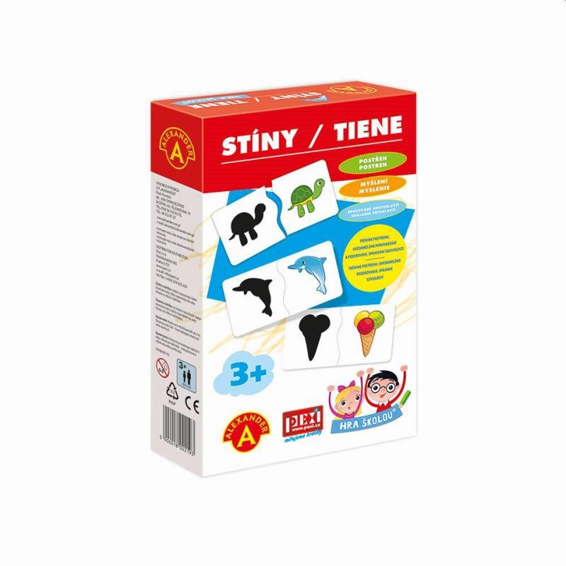 Dotaz na produktHra Školou® – Stíny je naučné hraní pro malé objevitele od 3 let. Rozvíjí kombinační schopnosti, pozorování a postřeh. Sestavte a poznejte 24 dvojic složených ze stínu a barevného obrázku zvířat, hudebních nástrojů a věcí z každodenního života. Zábava i pro maminky a tatínky. Jak vypadá obrys kachněte? V čem se liší od kuřátka? Váháte? Poznávejte svět společně. Kolik nápadů, tolik variant. Jak dítě poroste, stane se hra čím dál zábavnější.