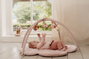 Dotaz na produkt Na splátky ještě dnesMěkká hrací deka ve tvaru květiny s hrazdou, na které jsou zavěšené hračky v podobě srnky, ptáčka, květiny, jahůdky a houby. Při zkoumání hraček upoutá pozornost dítěte chrastění, šustění, pískání i zvonění. Hračky jsou odnímatelné a je možné je používat i samostatně.