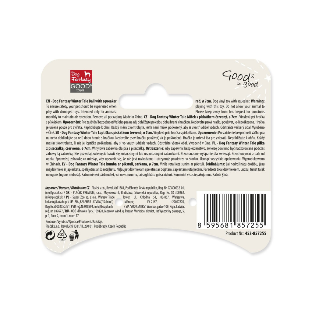 ÚvodChovatelské potřebyHračky pro zvířataHračka Dog Fantasy Winter Tale míček pískací, červená ⌀ 7cm