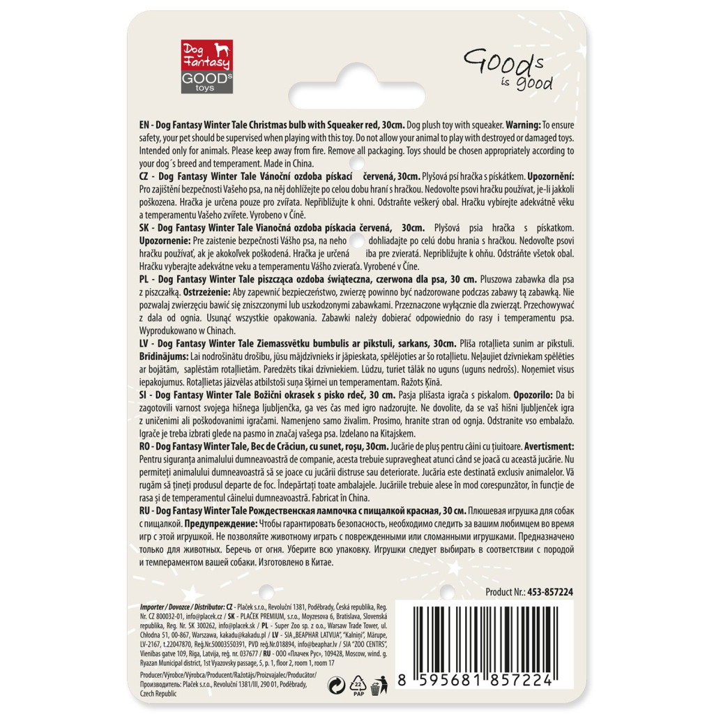 ÚvodChovatelské potřebyHračky pro zvířataHračka Dog Fantasy Winter Tale ozdoba vánoční pískací, červená 30cm