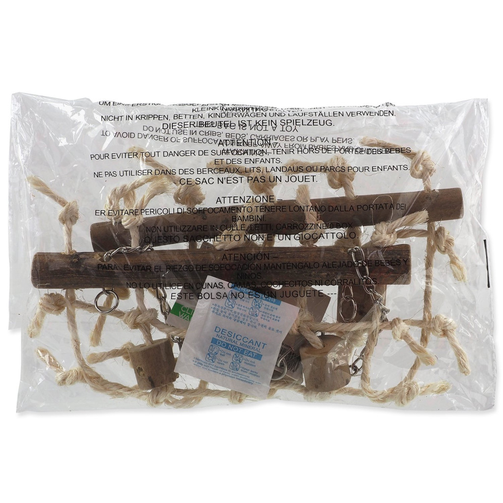 Dotaz na produktZávěsná čtvercová šplhací stěna s dřívky vhodná pro malé a střední exotické ptactvo. Z přírodních materiálů.