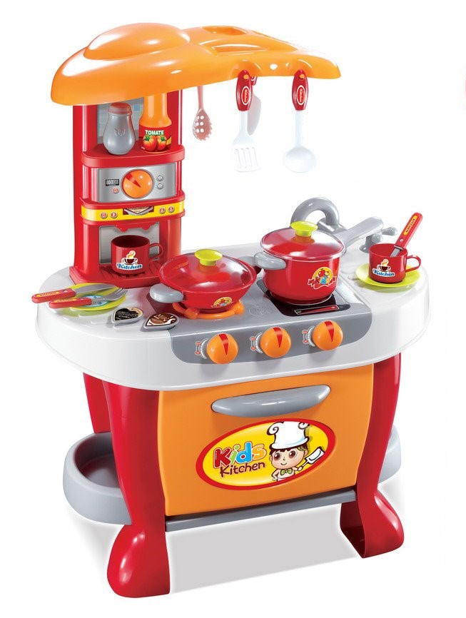 Dětská kuchyňka G21 v oranžové barvě má troubu, dvě plotýnky na vaření, dřez, odkládací plochu, věšák na kuchyňské náčiní a mnoho dalšího příslušenství. Zvuk a světelná signalizace při zapnutí plotýnky. V balení 31 kusů nádobí jiného příslušenství.