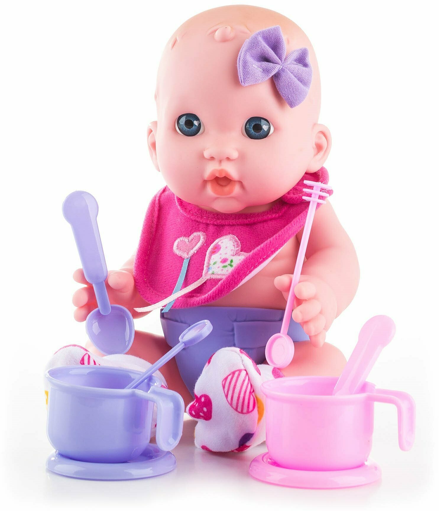 Každé malé miminko potřebuje pravidelnou stravu. Proto najdete v balení kromě panenky také jídelní set, který se skládá z 2 hrnečků, 2 talířků a 4 lžiček.