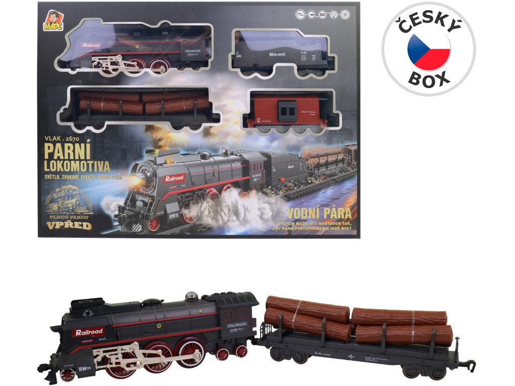 Dotaz na produktParní vlaková souprava na baterie přináší dětem jedinečný zážitek díky světelným a zvukovým efektům. Efekt páry, která vychází nejen z komína, ale i z podvozku lokomotivy, dodává hře realistický nádech a zabaví malé strojvedoucí na dlouhé hodiny. Montáž kolejnic je opravdu snadná. Hračka je vhodná pro děti od 3 let.