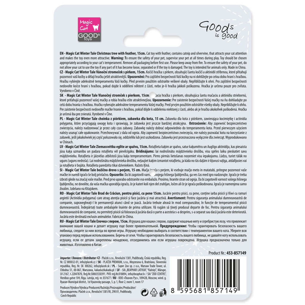 Upozornění: Pro zajištění bezpečnosti Vaší kočky na ni dohlížejte po celou dobu hraní s hračkou. Hračku vybírejte adekvátně temperamentu Vaší kočky. Před prvním použitím odstraňte veškeré obaly. Nepřibližujte k ohni. Pro zajištění bezpečnosti nedovolte kočce hraní s hračkou, pokud dojde k oddělení některé z částí, nebo je-li hračka jakkoli poškozena. Hračka je určena pouze pro zvířata.