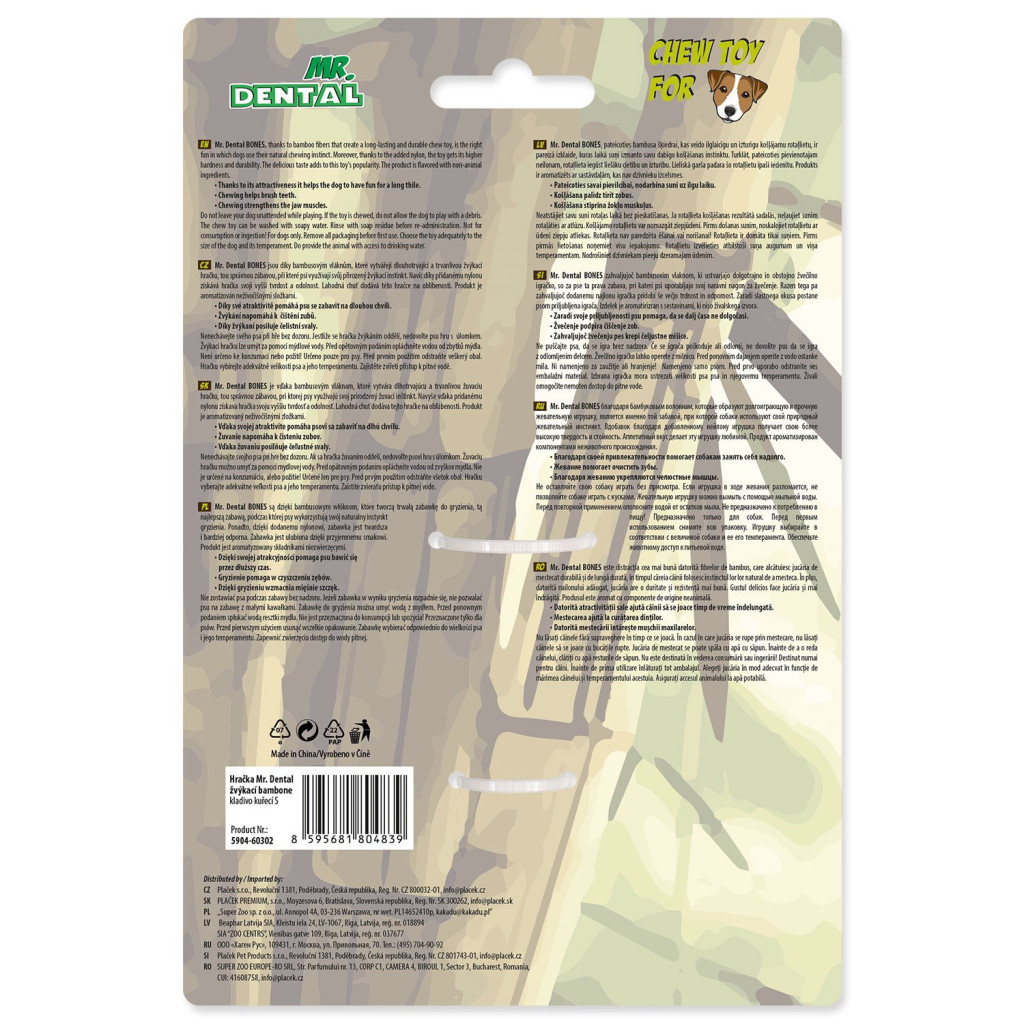 Hračky Mr. Dental Bambones jsou zábavou pro všechny velikosti a plemena psů, která vyhledávají zábavu v podobě žvýkání. Díky dostupnosti v několika velikostech (S, M, L, S/M, L/XL), tvarech (kladivo, klacek, růžek, ypsilon a kost) a vůních (kuře, hovězí a slanina) si na své přijde opravdu každý pejsek.