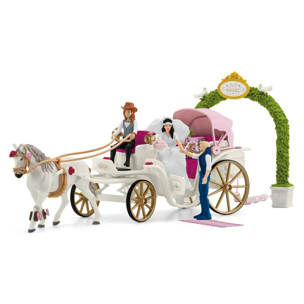Figurky jsou krásně malované a detailní. Navíc mají pohyblivé ruce a nohy. Kočí Hannah i její kůň jsou připraveni odvézt nevěstu a ženicha na svatební cestu. Kočár vzadu zdobí provázek s plechovkami. Dítě si s hračkou vyhraje a užije si mnoho zábavy.