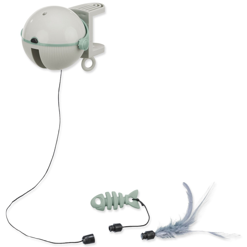 Dotaz na produktCatch It je automatická hračka pro kočky. Nepravidelný pohyb motivuje kočku ke hře. Hračka se snadno připevňuje na stůl, polici nebo škrabadlo s maximální tloušťkou 4 cm. Součástí balení jsou 2 vyměnitelné hračky – ryba a peří, které se pohybují nahoru a dolů, čímž stimulují lovecké instinkty kočky a povzbuzují ji ke hře.