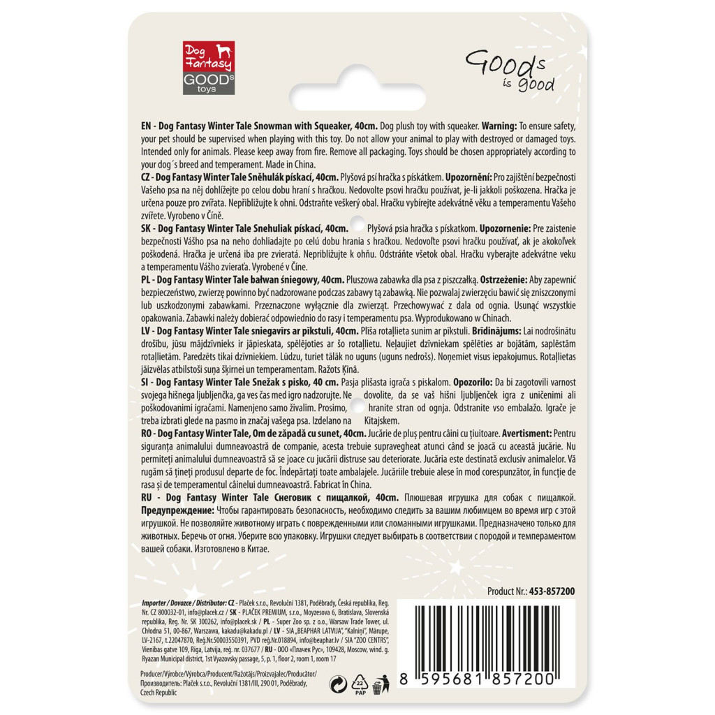 ÚvodChovatelské potřebyHračky pro zvířataHračkaDog Fantasy Winter Tale sněhulák plyš pískací 40cm