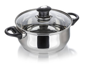 Nerezový hrnec se skleněnou poklicí SUPER VALUE pro přípravu různých pokrmů.