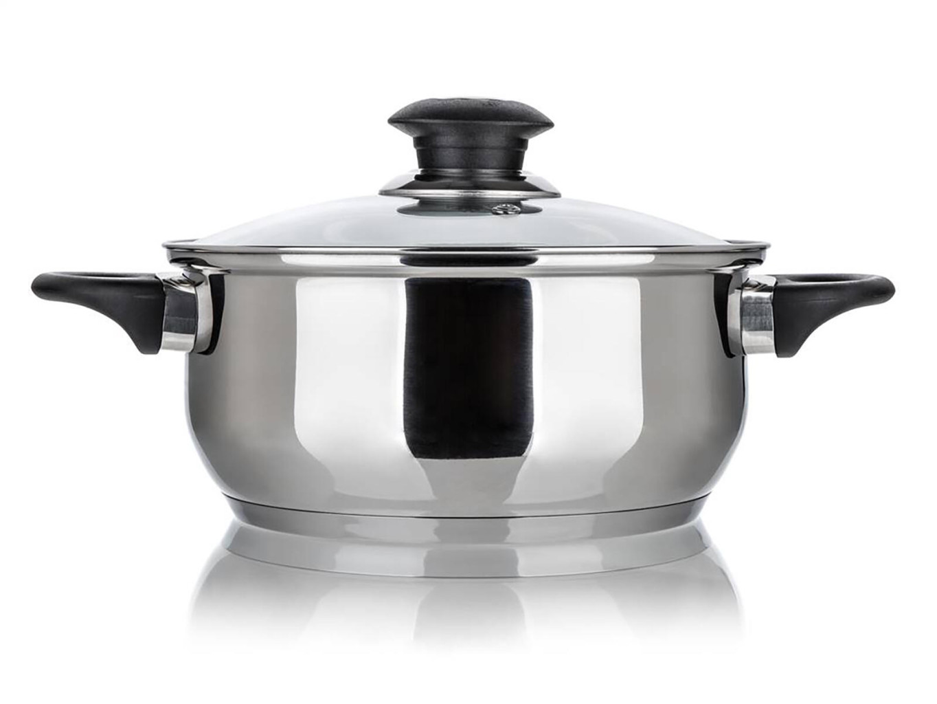 Nerezový hrnec se skleněnou poklicí SUPER VALUE pro přípravu různých pokrmů.