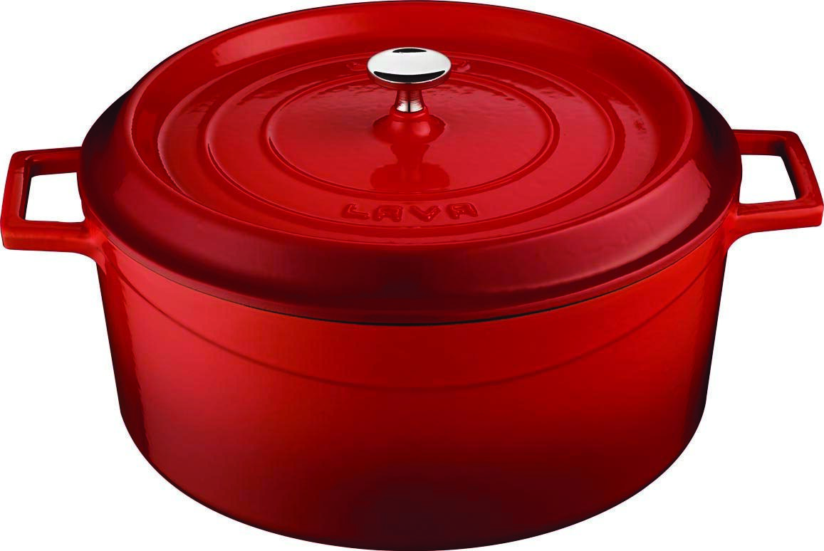 Hrnec litinový kulatý, červený, obsah 4,5 l, Ø 24 cm