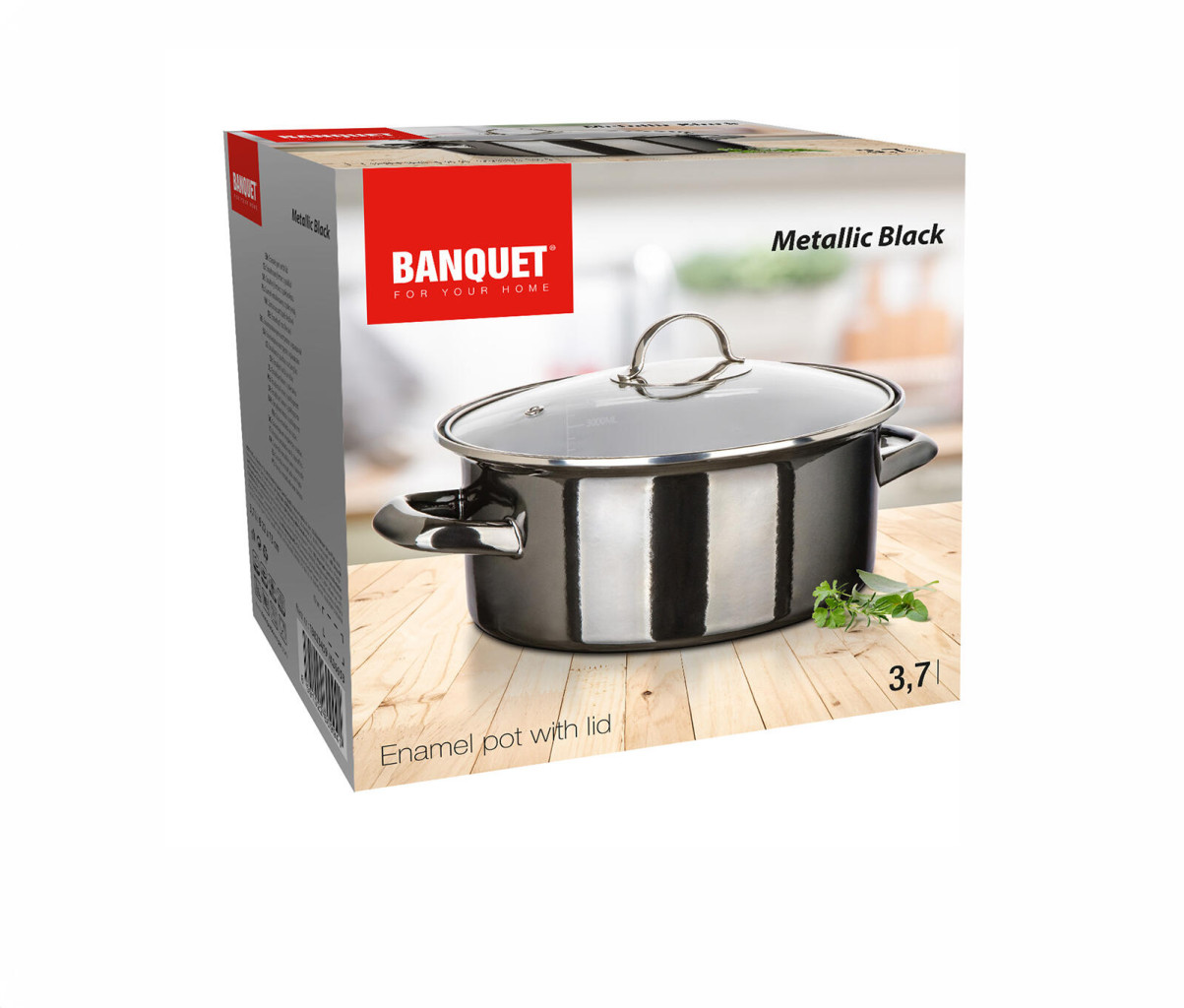Smaltovaný hrnec METALLIC Black se skleněnou poklicí.