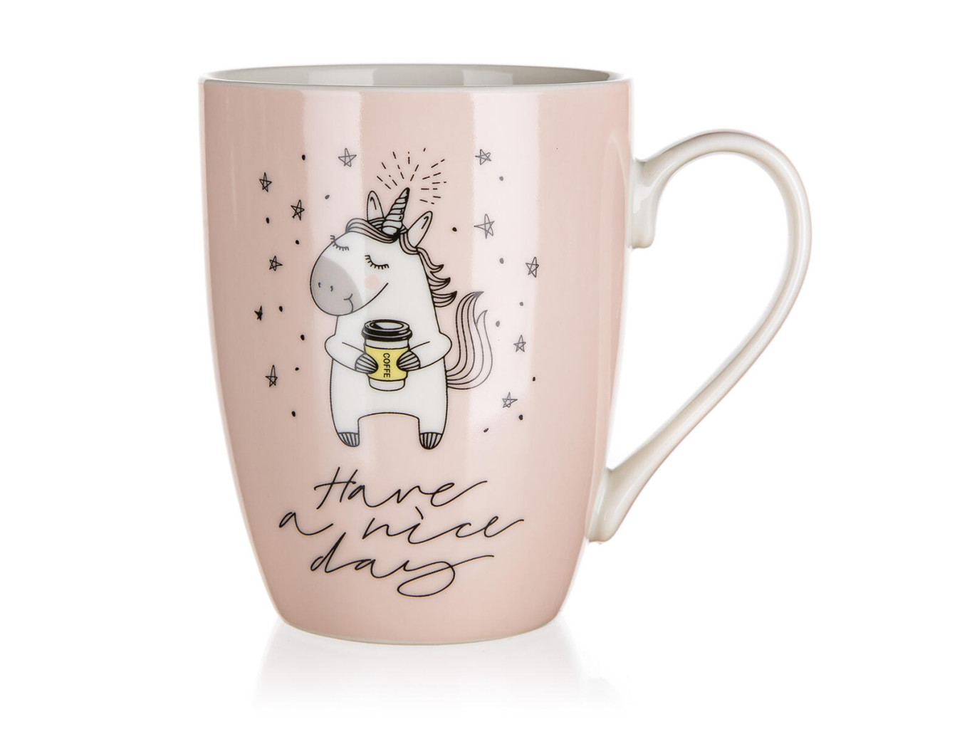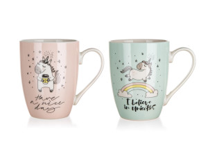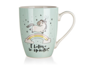 Hrnek UNICORN 340 ml je vyroben z keramiky, vhodný na horké i studené nápoje.