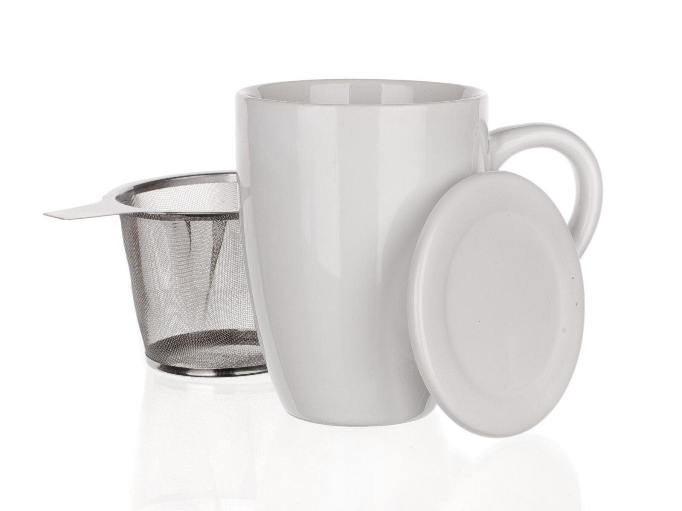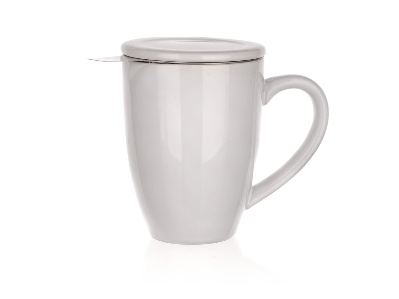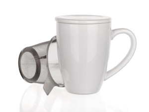 Dotaz na produktHrnek 350 ml bílý keramický, víčko + nerez sítko.