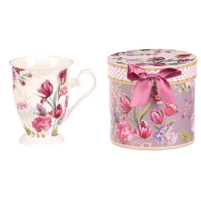 Dotaz na produktPorcelánový hrnek s jemným květinovým motivem v odstínech fialové a růžové je doplněn o praktickou dárkovou dózu se stejným vzorem a saténovou stuhou. Hrnek má elegantní tvar s ozdobným uchem a mírně rozšířeným okrajem, což usnadňuje pití. Porcelánové provedení zajišťuje snadnou údržbu a dlouhou životnost, vhodný je pro každodenní použití i jako stylový dárek. Dárková dóza chrání hrnek při skladování nebo přepravě a zároveň podtrhuje estetickou hodnotu celého setu.