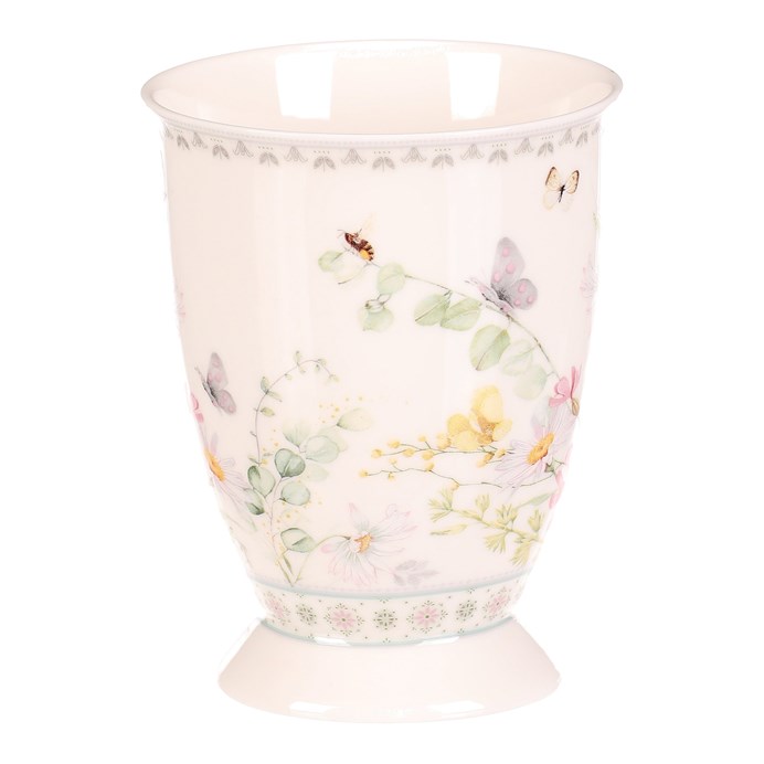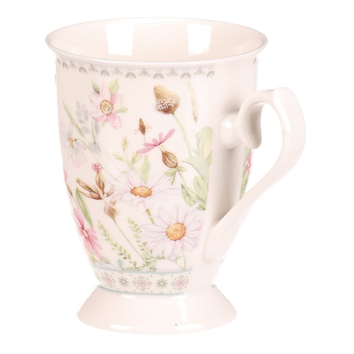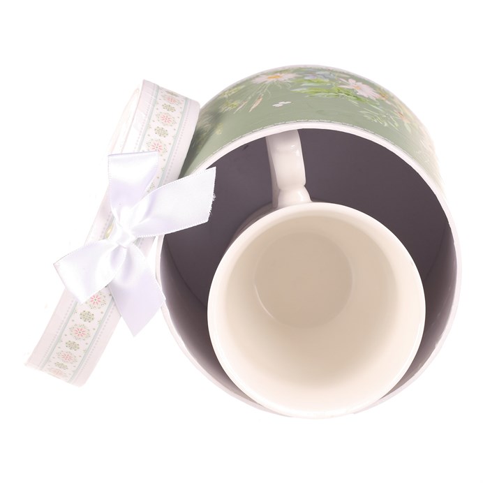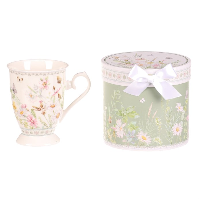 Dotaz na produktPorcelánový hrnek s jemným motivem rozkvetlé louky v zelených a pastelových odstínech přináší do každodenního pití čaje či kávy příjemnou atmosféru. Hrnek je doplněn elegantní dárkovou dózou se stejným květinovým vzorem a bílou stuhou, která zajišťuje stylové a praktické balení vhodné jako dárek. Díky kvalitnímu porcelánu je povrch hladký a snadno omyvatelný, což usnadňuje údržbu. Tvar hrnku s výrazným uchem umožňuje pohodlné držení a stabilní postavení. Celkový design spojuje funkčnost s dekorativním efektem vhodným do klasických i moderních interiérů.