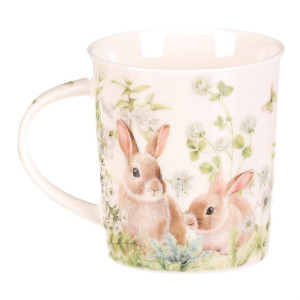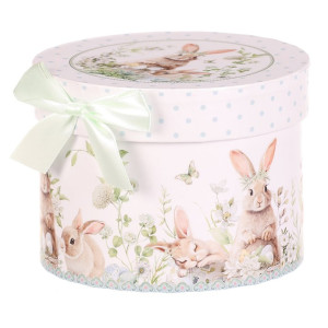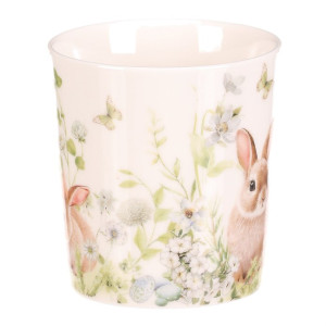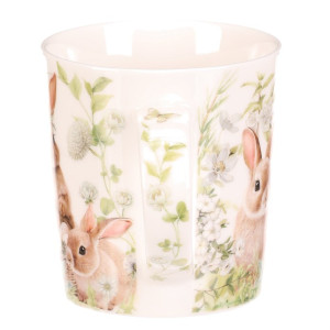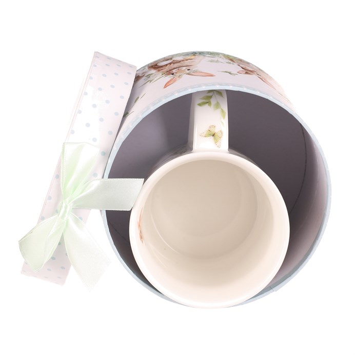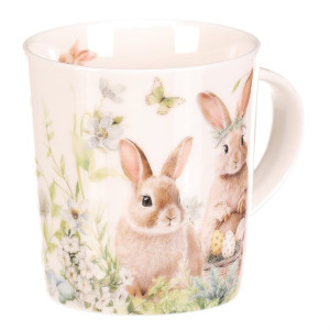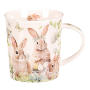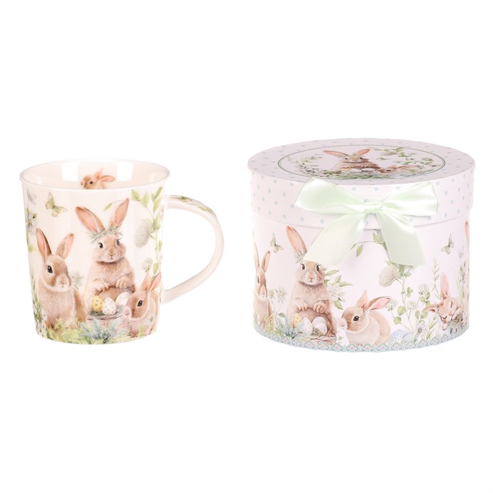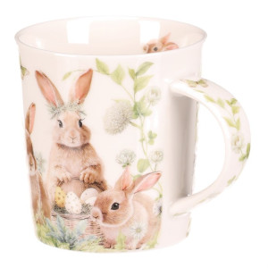 Dotaz na produktPorcelánový hrnek s jemným malovaným motivem zajíčků v přírodních odstínech přináší do každodenního užívání nádech něžné atmosféry. Hrnek je vyroben z kvalitního bílého porcelánu, který se snadno udržuje a je vhodný pro běžné použití. Součástí balení je dárková kulatá dóza s potiskem laděným do stejného motivu, doplněná o světle zelenou saténovou mašli, která podtrhuje celkový estetický dojem. Tento set je vhodný jako originální dárek nebo dekorativní doplněk do kuchyně či jídelny.