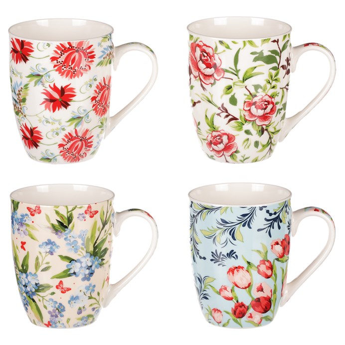 Dotaz na produktPorcelánový hrnek zdobený romantickými květy ve 4 různých provedeních pro každodenní pití kávy, čaje, či jiného nápoje.