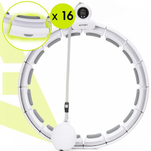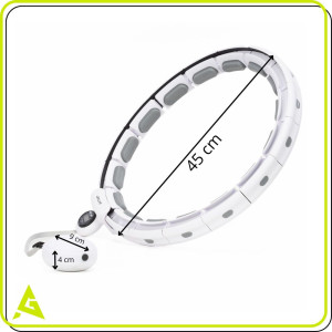Masážní fitness obruč se závažím a počítadlem pro efektivní tvarování postavy a rychlejší spalování tuků. Nastavitelný obvod 70–110 cm. Nastavitelná délka a hmotnost závaží do 400 g. Závaží na kuličkových ložiscích pro plynulý pohyb. 16 masážních prvků pro intenzivní stimulaci svalů. LCD počítadlo – spálené kalorie a počet otáček.