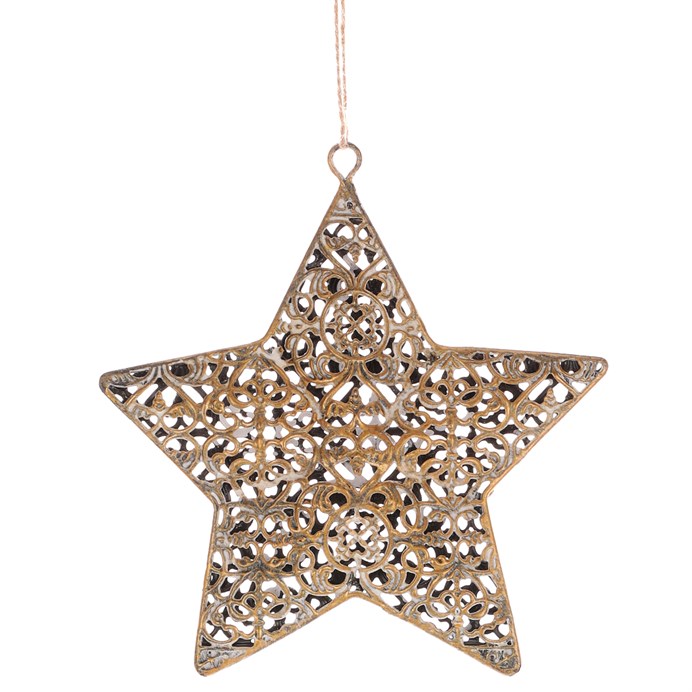 Dotaz na produkt Na splátky ještě dnesTato kovová závěsná dekorace v podobě ozdobné hvězdy v měděné barvě bude tradičním doplňkem pro vaši vánoční výzdobu. Hvězda je dutá a má stěny s ozdobnými ornamenty, skrze které proniká světlo. S provázkem na pověšení může být snadno umístěna na různých místech v interiéru. Kovový odstín dodá prostoru příjemný barevný nádech. Nabízí se i kombinace s jinými závěsnými ozdobami v odlišných odstínech a provedeních. Můžete si tak vytvořit neodolatelný barevný mix, který bude vytvářet příjemnou atmosféru kolem vás.
