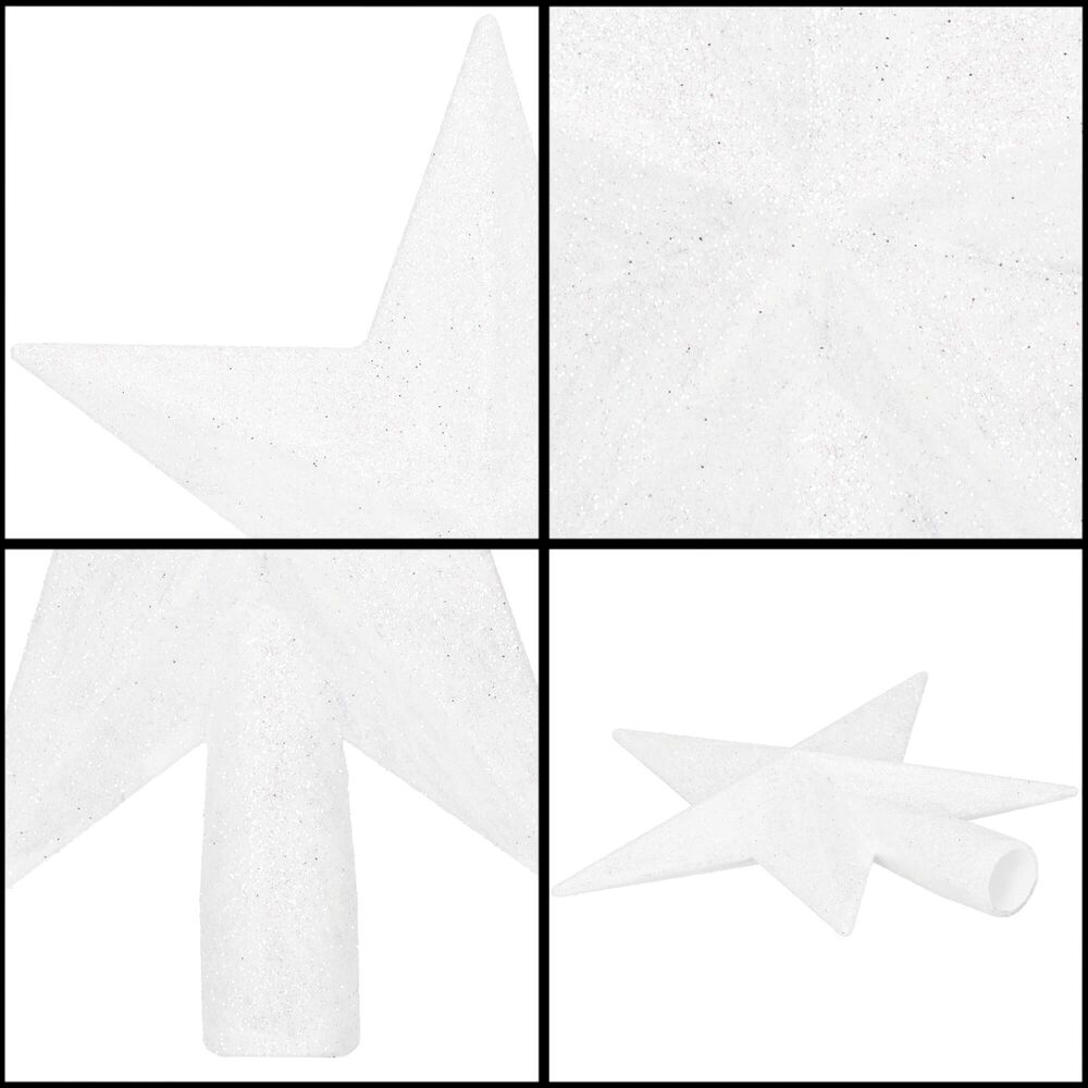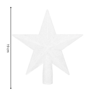 Bílá třpytivá hvězda z lehkého, nerozbitného plastu dodá vánočnímu stromku jemný a elegantní vzhled. Díky otvoru o průměru 1,5 cm se snadno nasazuje na špičku. Díky svému výraznému tvaru a velikosti 19 cm působí jako originální dekorace, která krásně doplní sváteční atmosféru.