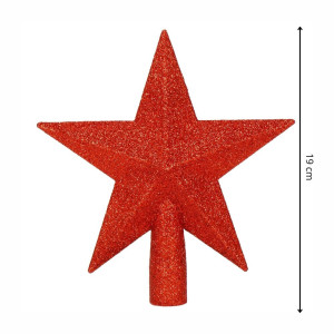 Třpytivá červená hvězda v plastovém provedení dodá vánočnímu stromečku výrazný a slavnostní vzhled. Lehký, nerozbitný materiál zajišťuje snadné umístění na špičku stromku. Díky svému výraznému tvaru a velikosti 19 cm působí jako originální dekorace, která krásně doplní sváteční atmosféru.
