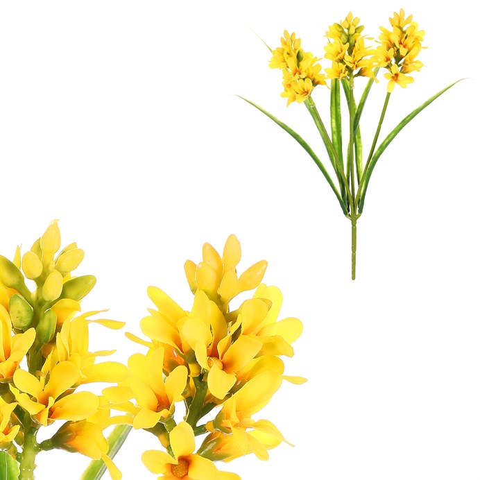 Dotaz na produktUmělý hyacint se třemi hlavami přináší svěží jarní nádech po celý rok. Jeho detailní zpracování a krásné žluté květy jsou věrnou imitací skutečných hyacintů, čímž dodají jemnost a přírodní krásu do prostoru. Skvělá volba pro elegantní květinové aranžmá, která nikdy neuvadne.