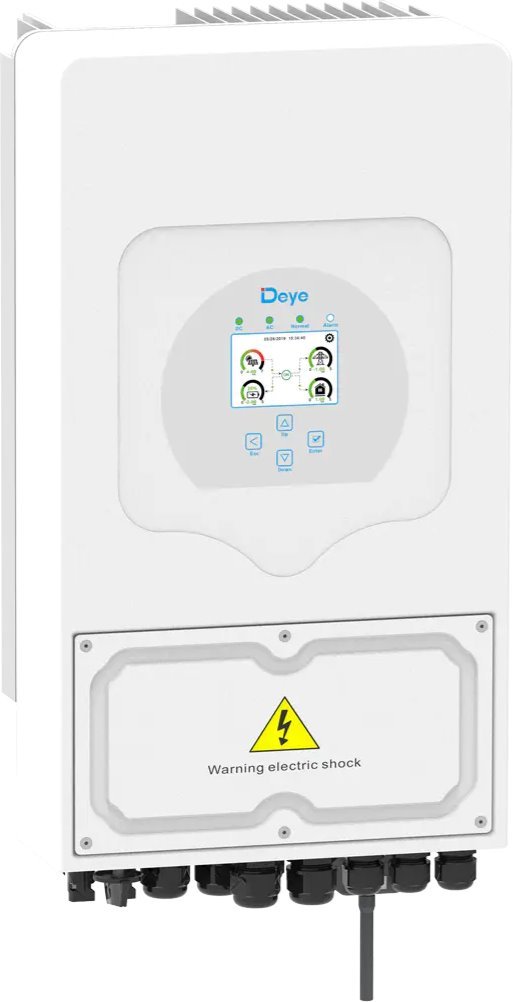 Dotaz na produkt Na splátky ještě dnesHybridní invertor Deye využijete pro rezidenční a lehké komerční použití. S jeho pomocí zvýšíte míru vlastní spotřeby solární energie i energetické účinnosti. V průběhu dne fotovoltaický systém vyrábí elektřinu. Tu nejprve dodává do zátěží. Přebytečnou energií nabíjí baterii pomocí hybridního invertoru.