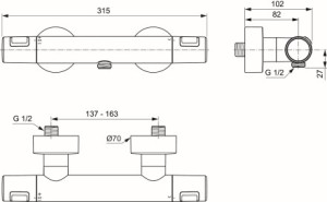šířka 315 mmrozteč 137 - 163 mmpřipojení G 1/2"průtok při 3 barech 22 l/minbarva hedvábná černáCool Body (žádné riziko popálení, při jakkoli vysoké teplotě vody je baterie vždy 100% bezpečná na...