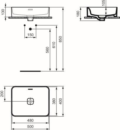 IDEAL STANDARD STRADA II umyvadlo na desku 50 cm, s přepadem